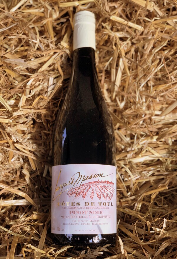 Pinot noir Appellation Côtes de Toul Controlée Produit de France Mis en bouteille à la propriété par Jacques Masson. Alc. 14 % vol. Contenance : 75 cl Déconseillé chez la femme enceinte. Jacques Masson 54113 BULLIGNY - France - Tel. : 03.83.62.57.01